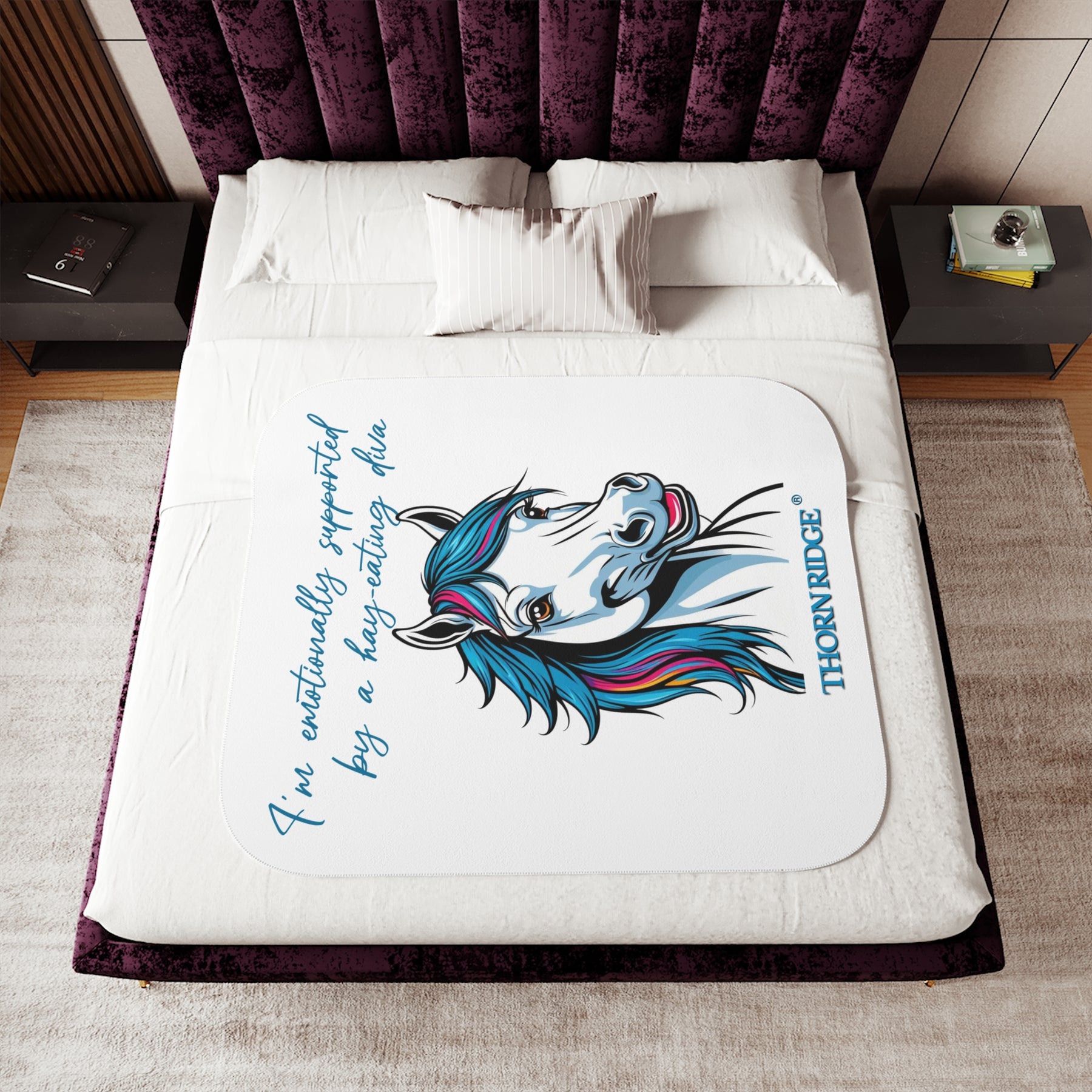 The Hay Eating Diva Sherpa Blanket celebrates that big personality and even bigger heart. It’s soft, comforting, and full of charm, made for chilly evenings and cool mornings at the barn, or curling up after a long day spent with your favorite four-legged therapist. Because for all her sass, she’s the one who nudges your shoulder when you’re down and reminds you that love sometimes comes with a side of hay dust.